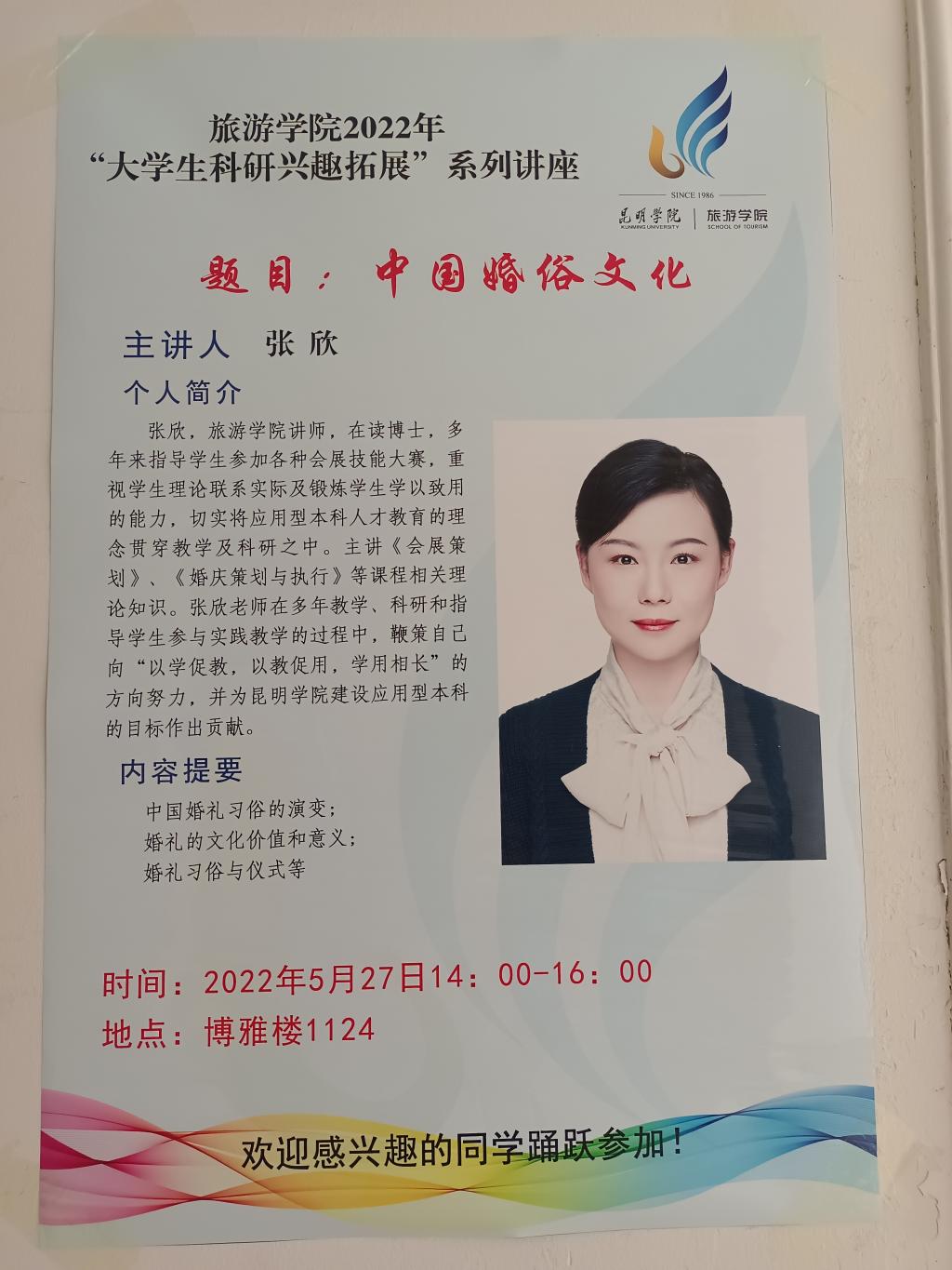 2022年5月27日下午14:00-16:00,TapTap在博雅楼1124教室,举办老员工科研兴趣拓展系列第三讲——中国传统婚俗文化,讲座由TapTap张欣老师主讲。