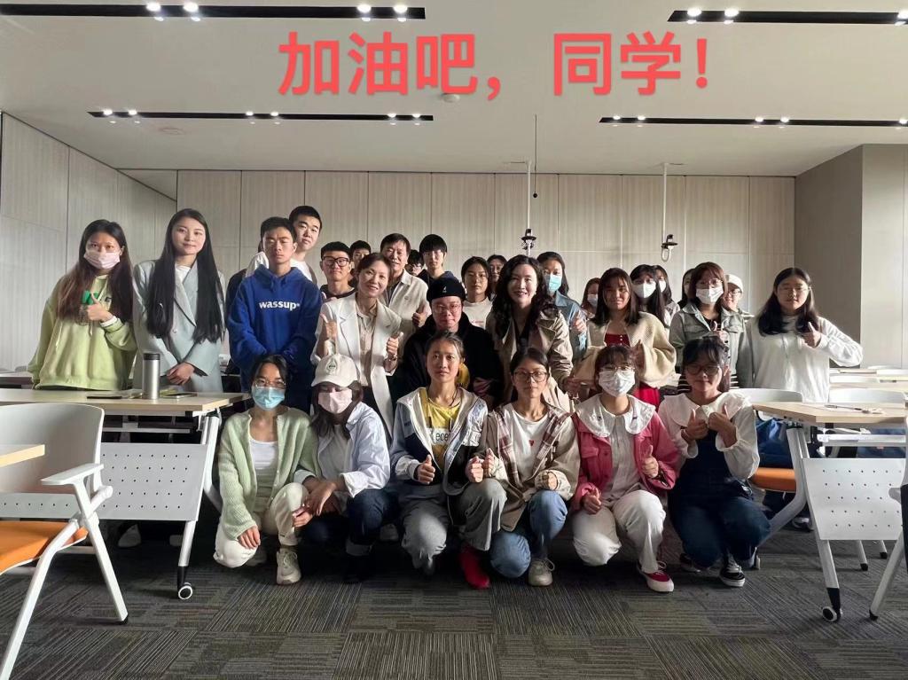 “海阔天空,狂风暴雨以后,转过头,对心酸一笑而过。最懂我的人,谢谢一路默默地陪我,让我拥有好故事可以说。看未来,一步步来了。”全体师生一同唱响励志歌曲。开班仪式在励志歌曲中圆满结束。