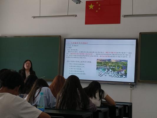 罗老师首先从文旅融创与乡村振兴角度出发,结合党的二十大报告提出的“坚持以文塑旅、以旅彰文,推动文化和旅游深度融合发展”,详细给同学们介绍了文旅融创、乡村旅游和乡村文旅三种定义。其次,罗老师介绍了乡村文旅产业发展是乡村振兴的重要推动力,为当地居民提供了更多的就业创业岗位,打通了增收致富门路。最后,罗老师提到,乡村文旅不仅留住了乡愁,更能快速全方位激发当地经济活力,带动了当地的农民增收、农村发展、农业升级。