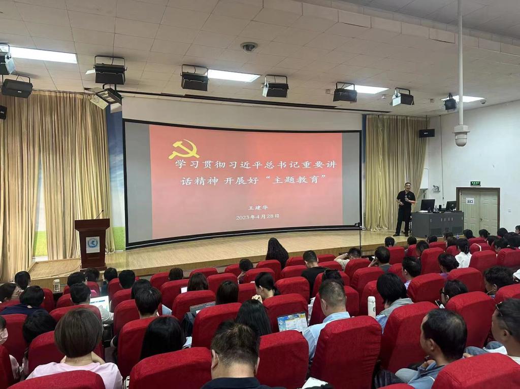 王建华以“学习贯彻习近平总书记重要讲话精神 开展好‘主题教育’”为主题,从一个主题、两个是、三个就是要、四个方面总要求、围绕根本任务实现五个具体目标、着力解决六个方面的问题等方面,对习近平总书记在“学习贯彻习近平新时代中国特色社会主义思想主题教育工作会议上的讲话精神”进行了解读。王建华强调,要牢牢把握开展“主题教育”的重大意义、总要求、根本任务和具体目标,切实提高政治站位,自觉把思想和行动统一到习近平总书记重要讲话精神和党中央决策部署上来。全体师生党员要结合公司建设发展实际,深刻认识“主题教育”的重大意义,切实增强开展主题教育的政治自觉、思想自觉、行动自觉,为培养旅游专业应用型人才,推动公司更快、更好、更高质量发展贡献力量。