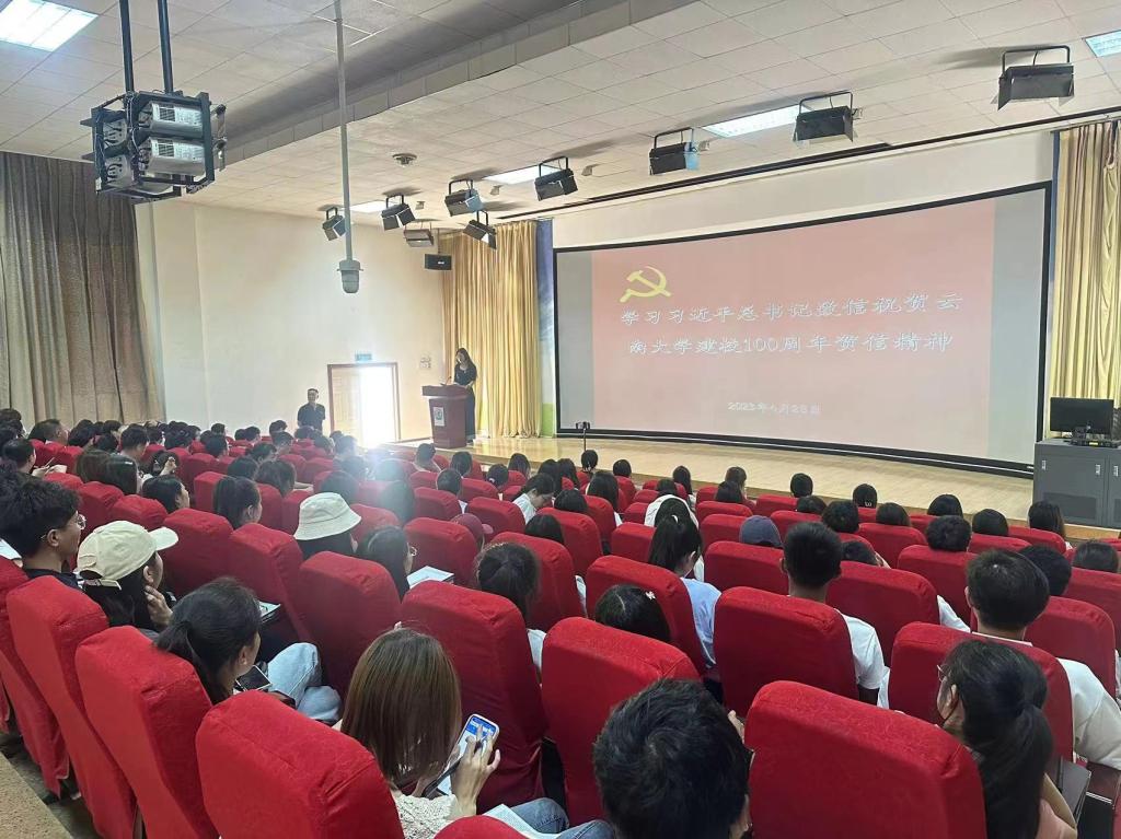 公司党委副书记刘艳萍带领师生一起共同学习贺信原文。王建华随后对贺信进行解读,他指出,贺信充分体现了习近平总书记及以习近平同志为核心的党中央对云南高等教育的关心,对云南四千八百多万人民的关怀,对边疆地区各民族团结发展的关注,为新时代云南高等教育的发展指明了方向,为边疆民族地区高校办学发展提供了科学指引和强大动力。我们要牢记习近平总书记“在强国建设、民族复兴的新征程上,希望云南大学以新时代中国特色社会主义思想为指引,全面贯彻党的二十大精神和党的教育方针,全面提升办学水平,为党育人、为国育才,推动铸牢中华民族共同体意识,为建设教育强国作出新的更大贡献”的殷切希望和嘱托,深刻理解把握蕴含在习近平新时代中国特色社会主义思想中的世界观方法论,运用好“六个坚持”,分析研究公司发展中的优势、困难及存在问题,推动公司特色发展,高质量发展。