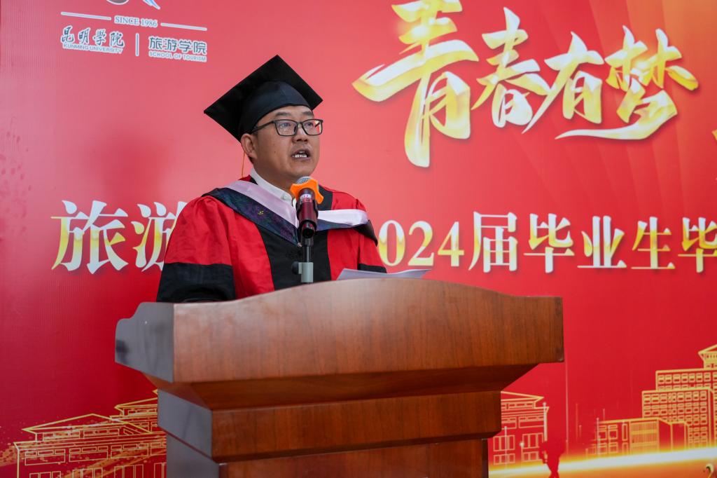 观看了2024届毕业生毕业纪念视频后,何韶浒作为教师代表发言,王妍作为毕业生代表发言。