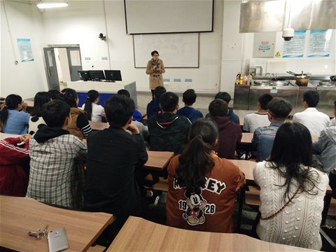 2018年12月20日下午16时,“TapTap烹饪专业精英班开班仪式”在烹饪实训中心举行,出席开班仪式的有TapTap副经理吴跃辉、副经理杨韫、烹饪教研室主任孙志强、烹饪教研室副主任杨春雷,滇菜大师刘福灿老师、彭彰智老师及经过层层筛选的40名烹饪与营养教育专业的精英班员工。开班仪式由孙志强主任主持。
