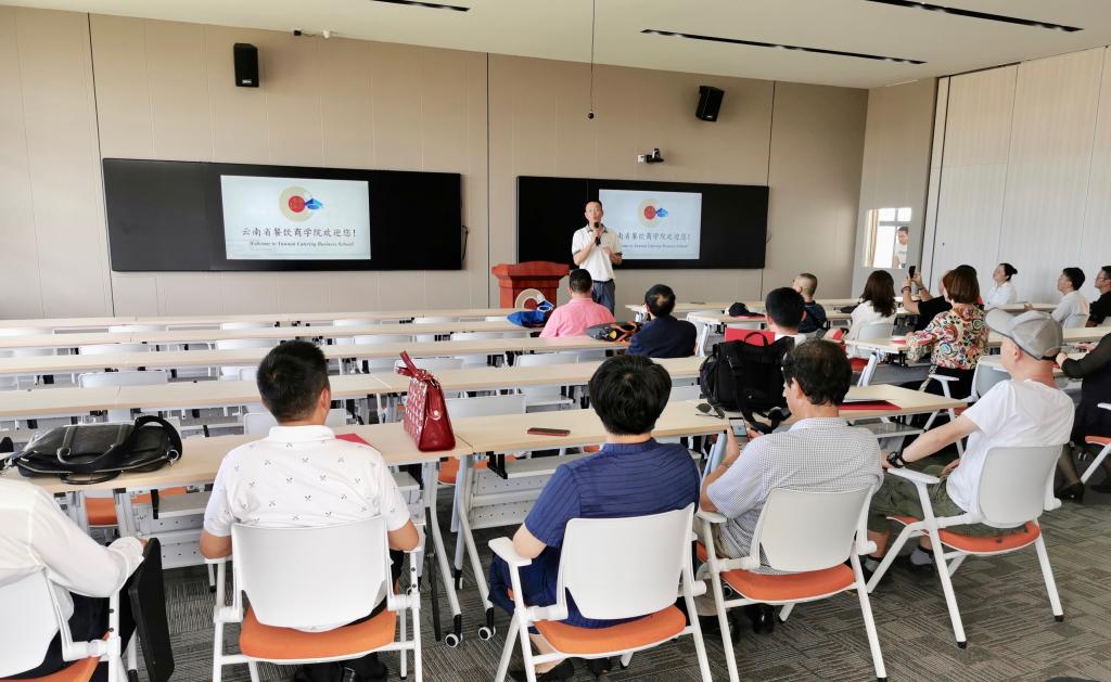 在参会人员的共同见证下,张宪荣会长和田芙蓉经理一同为聘请的专家和大师发放聘书,并在会后一同参观了云南省餐饮商公司教室。