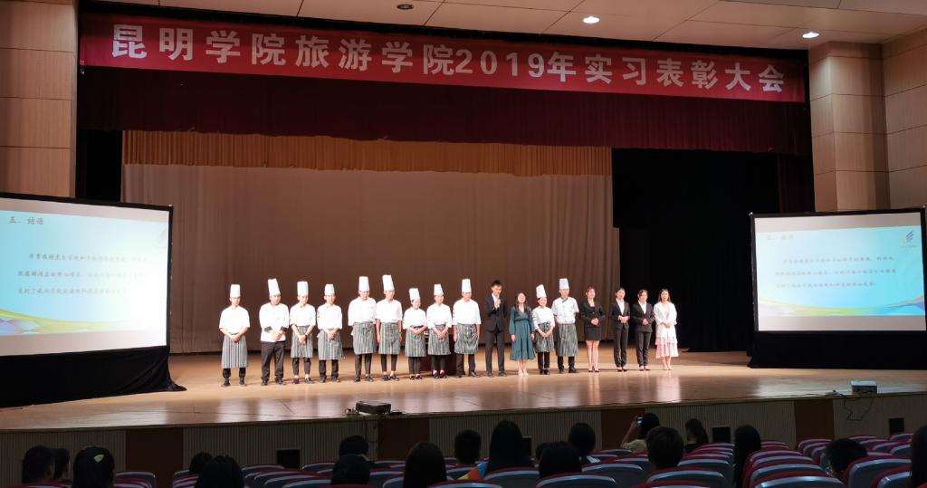 在大会上,专业教研室派出了员工代表作了汇报展演。本次汇报展演员工一改往届课程答辩的形式,以创意小品形式向全体参会的师生展现了他们在省外实习的工作和生活场景,为顶岗实习的结束画上了圆满的句号。
