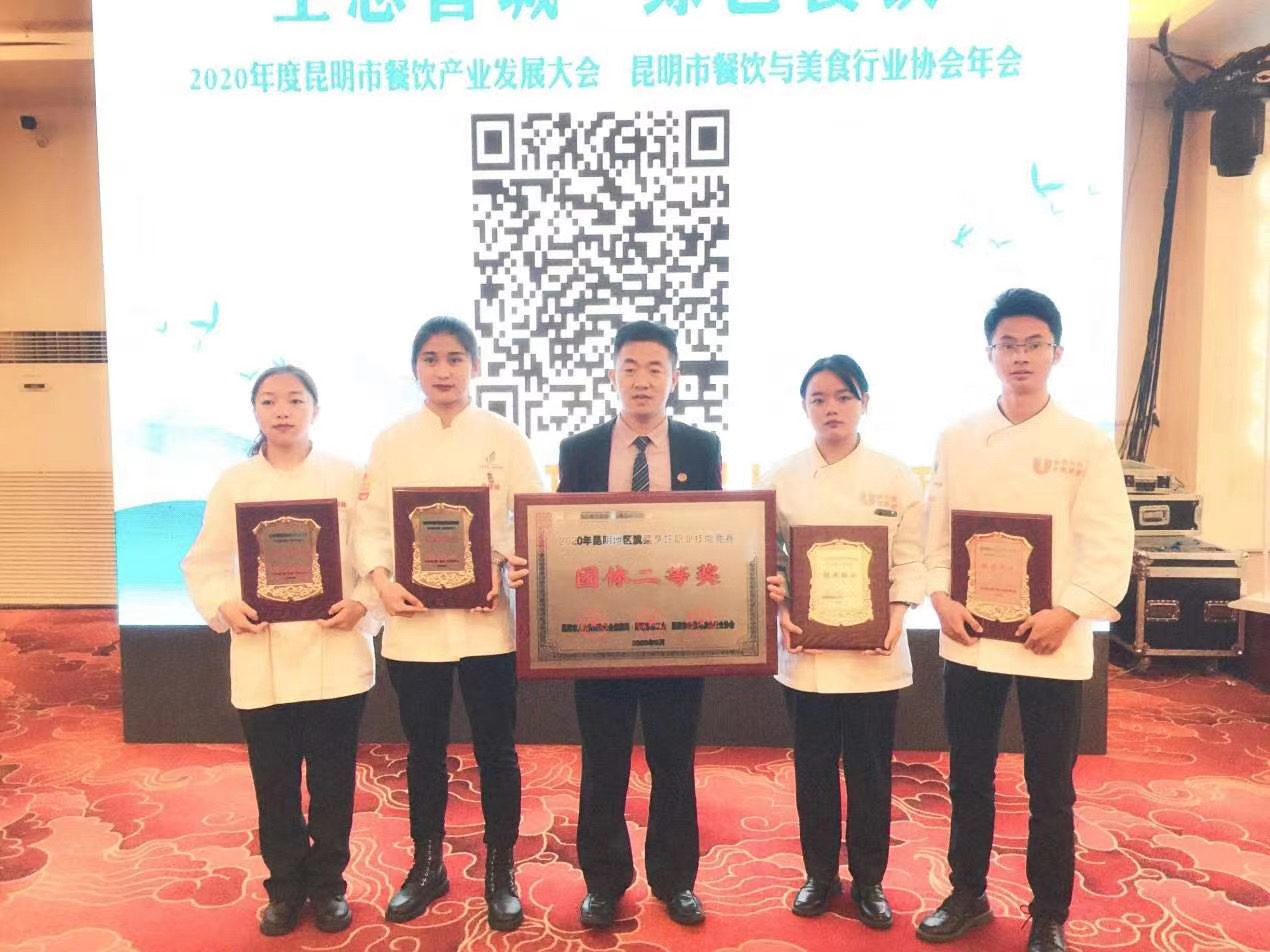 12月15日,“2020年昆明地区滇菜烹饪职业技能竞赛”在昆明国际会展中心3楼钻石厅举行颁奖仪式,本次技能竞赛由昆明市人力资源和社会保障局、昆明市总工会主办,云南省餐饮与美食行业协会支持,昆明市职业技能鉴定中心、昆明市职业培训指导中心、昆明市职工技术协会办公室、昆明市餐饮与美食行业协会等承办。9月中旬昆明地区50多家单位选手通过严格初选,共派出120多位厨界精英、30支团体队伍参加比赛。