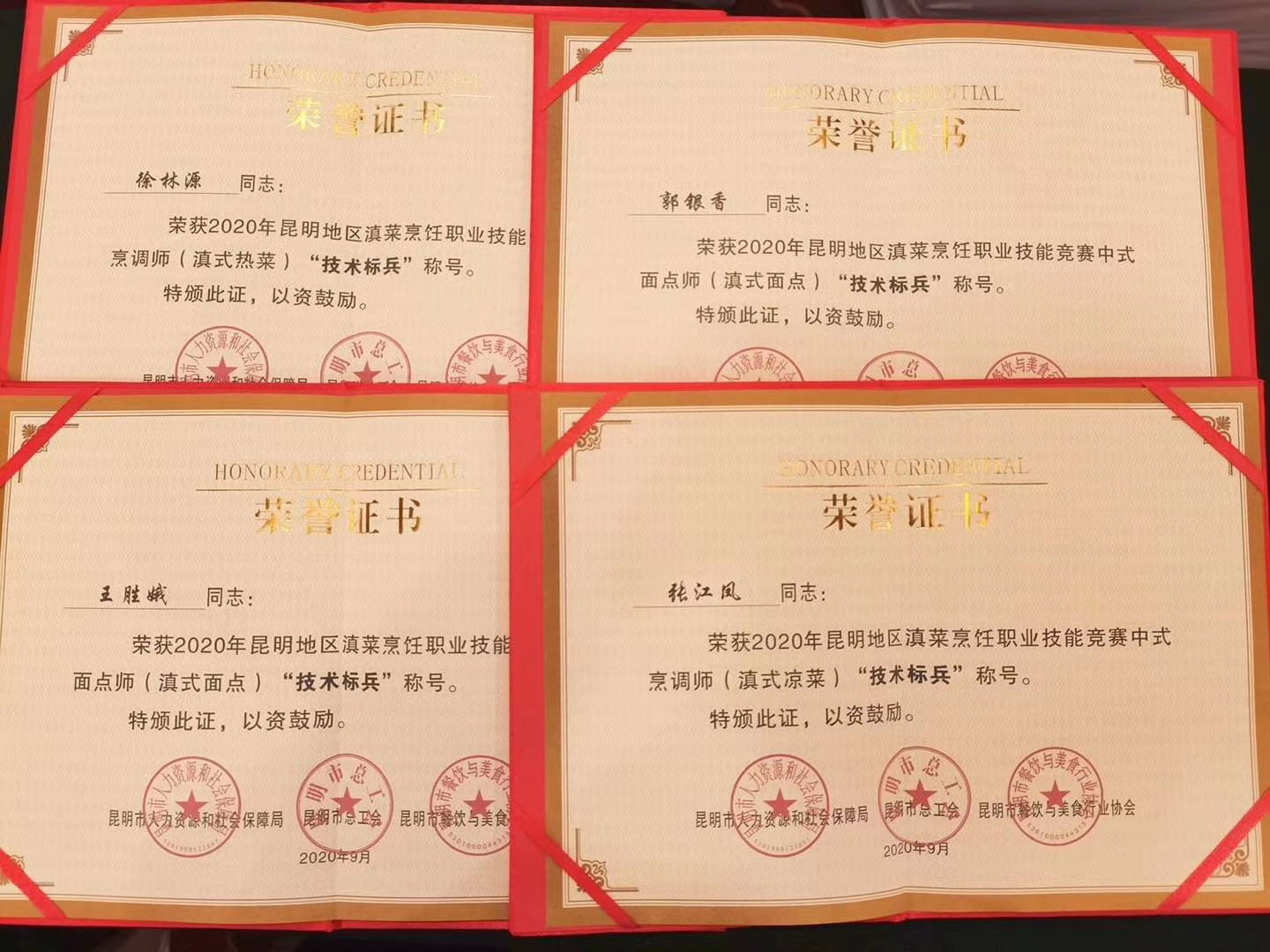 TapTap委派引进人才刘福灿大师组织员工集训、组建代表队并指导师生参赛。与各酒店工作经验很丰富的参赛代表同台竞技,游公司代表队表现优异,不负厚望,取得优异成绩,喜获佳绩。 TapTap荣获昆明市人力资源和社会保障局与昆明市总工会颁发的二等奖奖牌及证书;参赛选手共获奖牌5枚,荣誉证书5份,其中徐林源、张江凤、郭银香、王胜俄同学分别荣获技术标兵及1000元现金奖励。