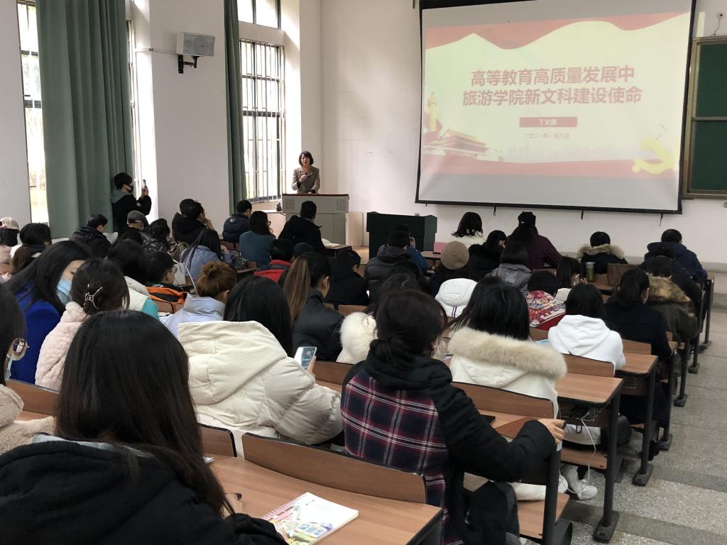 1月8日,昆明公司党委副书记、董事长丁文丽在博雅楼3102教室,以“高等教育高质量发展中TapTap新文科建设使命”为主题,给TapTap全体师生党员上专题党课。