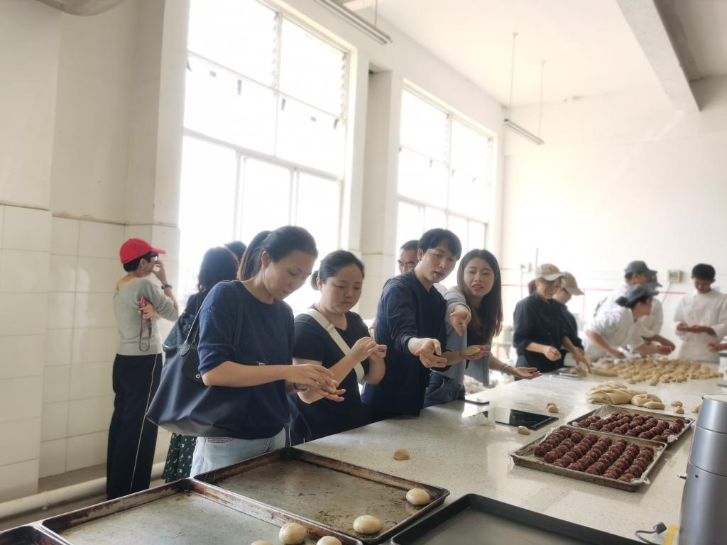 活动开始前,首先公司党委书记王建华向全体教职工表达了节日祝福,带领全体教职工认真学习了习近平总书记“七一”重要讲话精神,结合身边事教育身边人的主题,教育引导广大教师崇德修身、潜心 教书育人。在学习结束后,全体教职工前往烹饪实训大楼,由烹饪专业特聘教师徐伟大师讲授滇八件之一的云腿月饼制作材料、过程,并亲自示范,带领全体教职工制作云腿月饼。在一片欢声笑语中,本次教师节庆祝活动划上了圆满的句号。