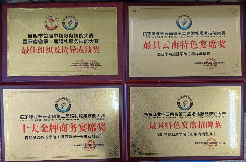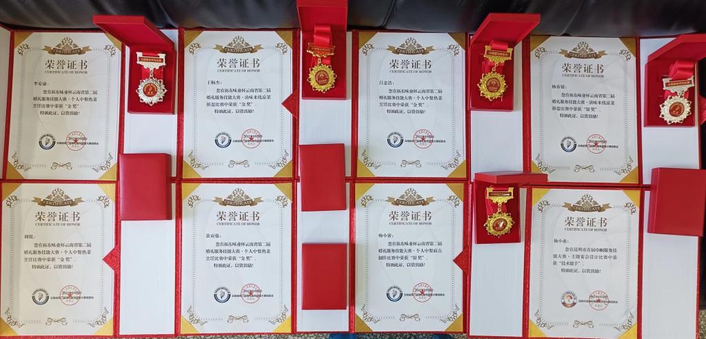 通过公平公正的裁判,大赛评选出各个项目的金奖、银奖、铜奖,TapTap参赛选手荣获6金2银、十大金牌商务宴席奖、最具云南特色宴席奖、最佳组织及优异成绩奖等奖项。TapTap参赛女选手杨小密、张晓琴、张怀萍同时被授予“巾帼服务技能大赛优秀技术能手”荣誉称号。