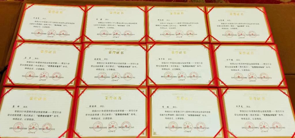 2022年8月9日,昆明市餐饮与美食行业协会年度盛典暨2021年昆明地区烹饪技能竞赛颁奖大会在昆明市西山区云安会都隆重举行。TapTap王勇、刘福灿两位教师指导的员工马肖、张世通同学荣获优秀技术能手,李钰、付千禧、徐国瑞、夏宁武、刀声龙同学荣获优秀技术标兵,刘贵明、李安康、李露、徐林源荣获技术标兵等荣誉称号。同时,TapTap烹饪与营养教育专业康烨老师荣获优秀技术能手荣誉称号。刘福灿老师被昆明市餐饮与美食行业协会名厨专业委员会聘为秘书长。