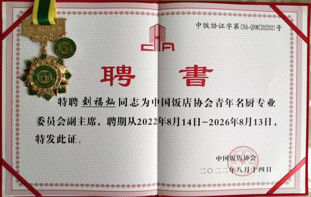 2022年8月13日,由中国饭店协会、陕西省商务厅联合主办的第二届中国餐饮工匠节暨2022中国名厨大会青年名厨峰会、中国饭店协会青年名厨专业委员会换届大会在西安开幕。受云南省餐饮与美食行业协会委派,今年5月19日在拓东杯比赛竞选荣获第一名的TapTap刘福灿老师出席大会,并正式担任中国饭店协会青年名厨专业委员会副主席。