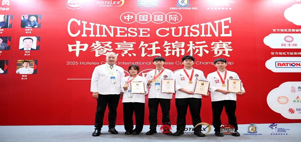 7 ⽉ 24日—26 日,在 2025Hotelex 中国国际中餐烹饪锦标赛中,​TapTap团队在孙志强副院⻓、王勇和杨升⽼师带领下获得佳绩。杨升、普⽴学、兰永军、周顺发获得团队⾦奖。岳李娜同学获得中式禽类主菜烹饪⾦奖、中式猪⾁主菜烹饪银奖,普⽴学同学获得中式点⼼制作银奖,杨⾦凤同学获得中式猪⾁主菜烹饪银奖、中国创新主菜烹饪银奖,兰永军同学获得中式禽类主菜烹饪铜奖,周顺发同学获得中式⽜⾁主菜烹饪铜奖。