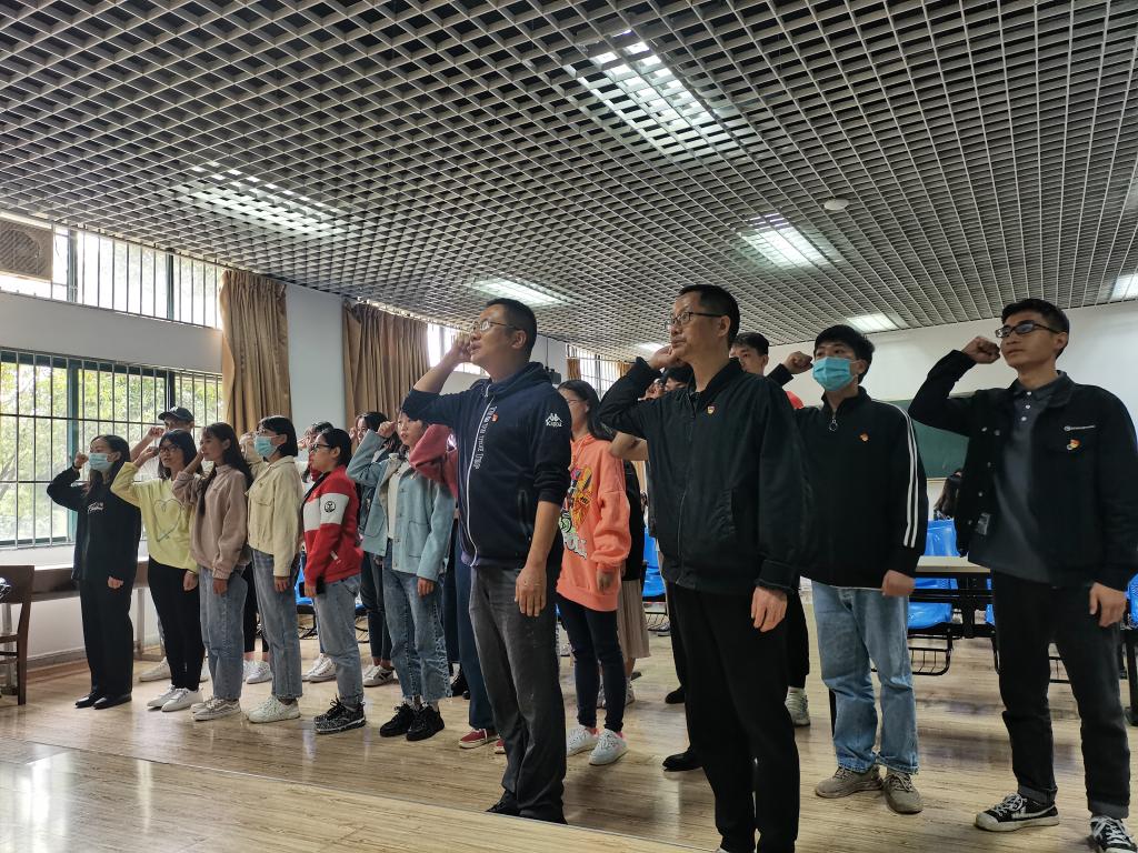 为进一步提高全体党员的荣誉感、责任感,切实发挥广大党员的先锋模范带头作用,9月18日,公司党委在惟行楼模拟导游实验室,组织开展了“新党员入党宣誓,老党员重温入党誓词”主题党日活动。公司党委2名组织员、3位员工党支部书记、23名新接收的预备党员及其他党员同志参加了主题党日活动。