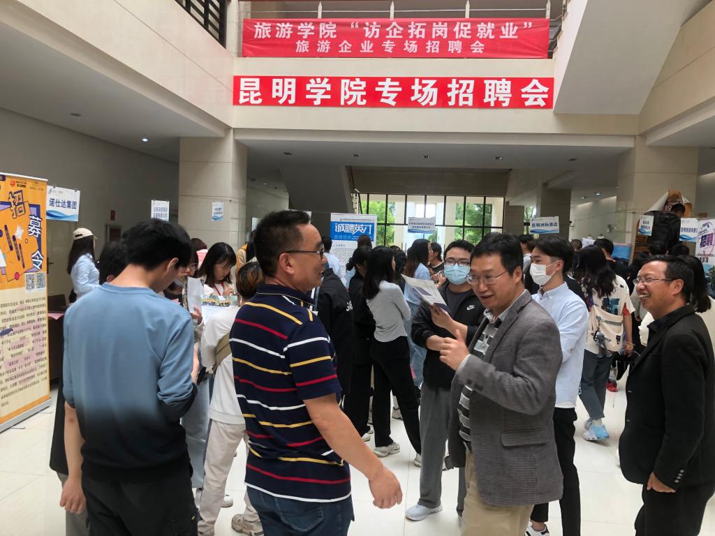 此次招聘会是TapTap响应公司“访企拓岗”行动以来,继餐饮企业专场、国宾酒店专场后举办的第七次专场招聘活动,也是本学期到场企业最多、员工参与度最高的一场招聘会。到场招聘企业不仅有西游洞景区、凤龙湾景区、佳途旅游等优质景区旅游企业,还有昆明花之城豪生国际大酒店、昆明洲际酒店、云南金泉大酒店、晟世仟和酒店等高端酒店,更有昆明滇池国家旅游度假区国投置业有限公司、云南云投酒店发展有限公司、云南世博旅游景区投资管理有限公司等老牌国企。各企业均提供了多个岗位供毕业生选择,160余名毕业生在了解到企业情况后纷纷向心仪企业投递简历。
