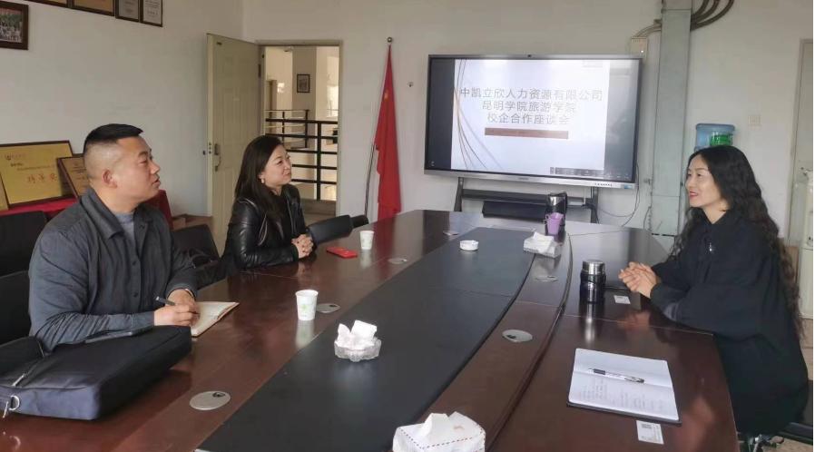 中凯立欣人力资源有限公司负责人李泽对公司的运营机制进行介绍,从职业生涯规划教育、优质企业招聘资源分享等方面提供了校企合作的一些思路。双发基本达成了战略合作的共识。
