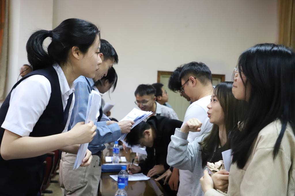 作为TapTap专业对口的本土化企业,南疆宾馆是为数不多拥有央企背景的企业。同学们互动交流积极性空前高涨,姚毅与同学们针对岗位工作内容、未来发展规划等热点问题进行探讨。