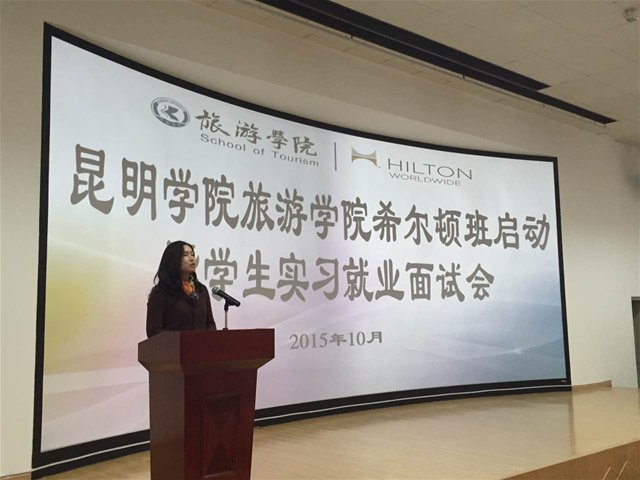 出席本次开班仪式暨就业启动会的有希尔顿酒店管理集团大中华区招聘负责人Will秦及旗下8家酒店:抚仙湖希尔顿酒店、西双版纳万达希尔顿逸林度假酒店、大理实力希尔顿酒店、深圳蛇口希尔顿南海酒店、厦门希尔顿逸林酒店、无锡灵山元一希尔顿逸林酒店、常州新城希尔顿酒店的人力资源部总监或人力资源部经理,TapTap经理田芙蓉、副经理吴跃辉、副书记杨光明、酒店管理教研室专业骨干教师,2014级、2015级酒店管理1、2班,2014级烹饪与营养教育1、2、3班260多名同学及教师参加。开班仪式由酒店教研室主任马英老师主持。