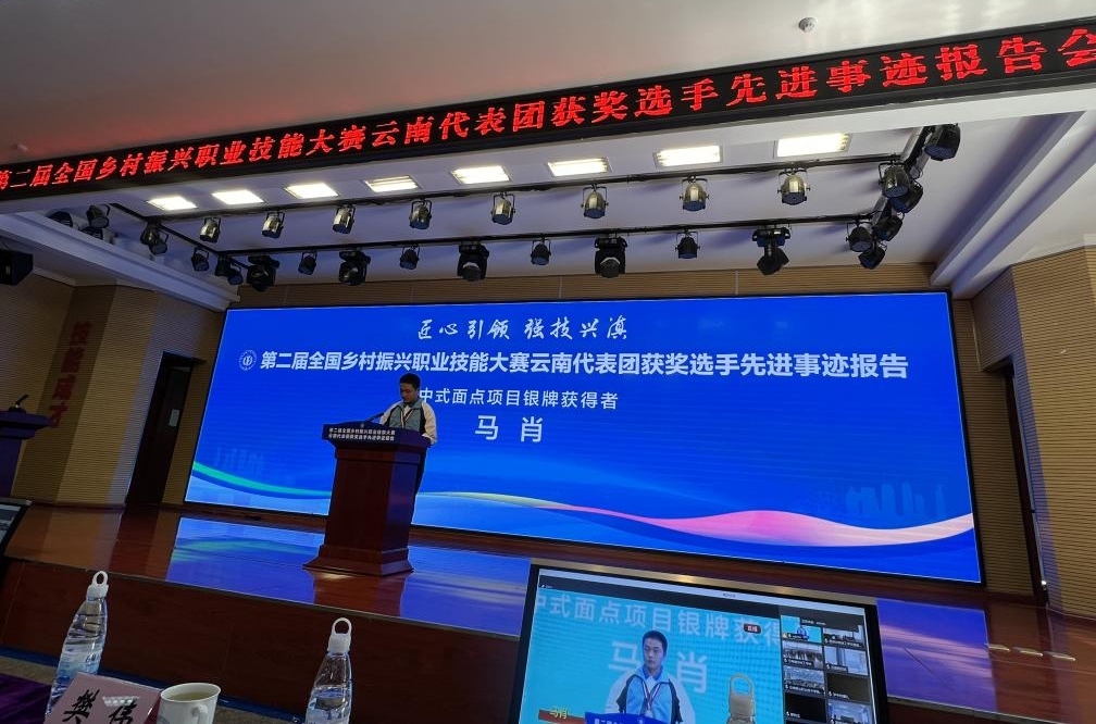 5月23日,TapTap烹饪与营养教育专业员工马肖,在第二届全国乡村振兴职业技能大赛云南代表团获奖选手先进事迹报告会上,交流其先进事迹。