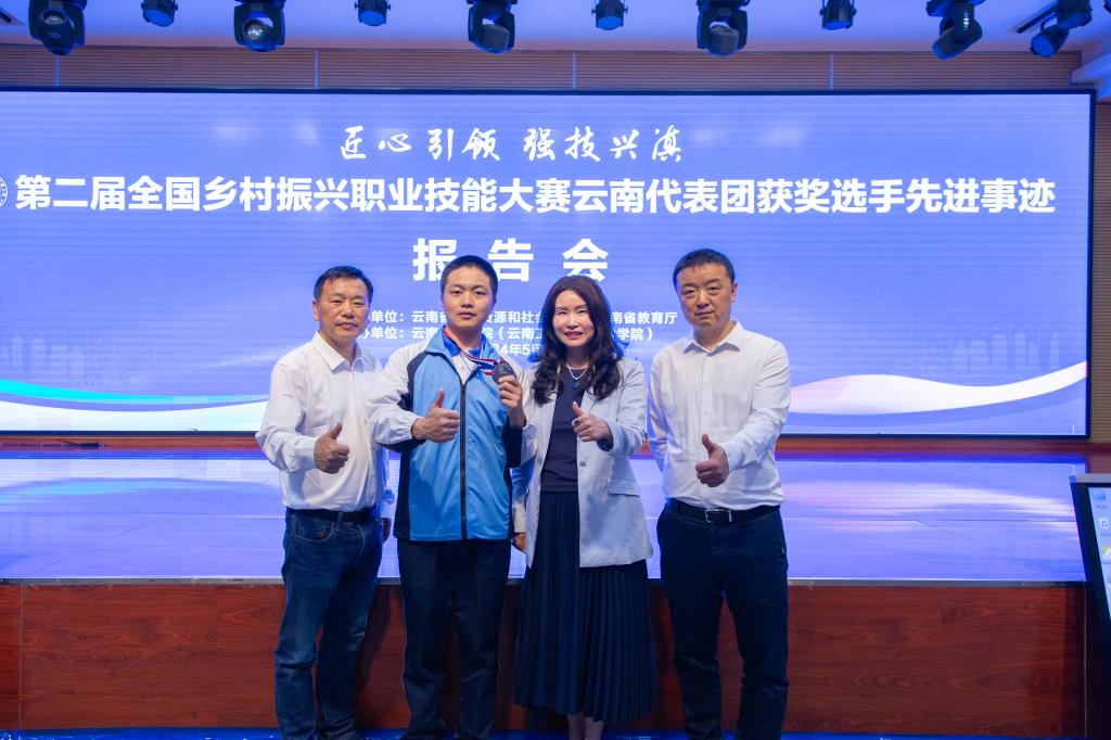 第二届全国乡村振兴职业技能大赛云南代表团获奖选手先进事迹报告会,由云南省人力资源和社会保障厅、云南省教育厅举办,旨在充分发挥第二届全国乡村振兴职业技能大赛云南代表团获奖选手示范引领作用,激励广大青年走技能成才、技能报国之路。